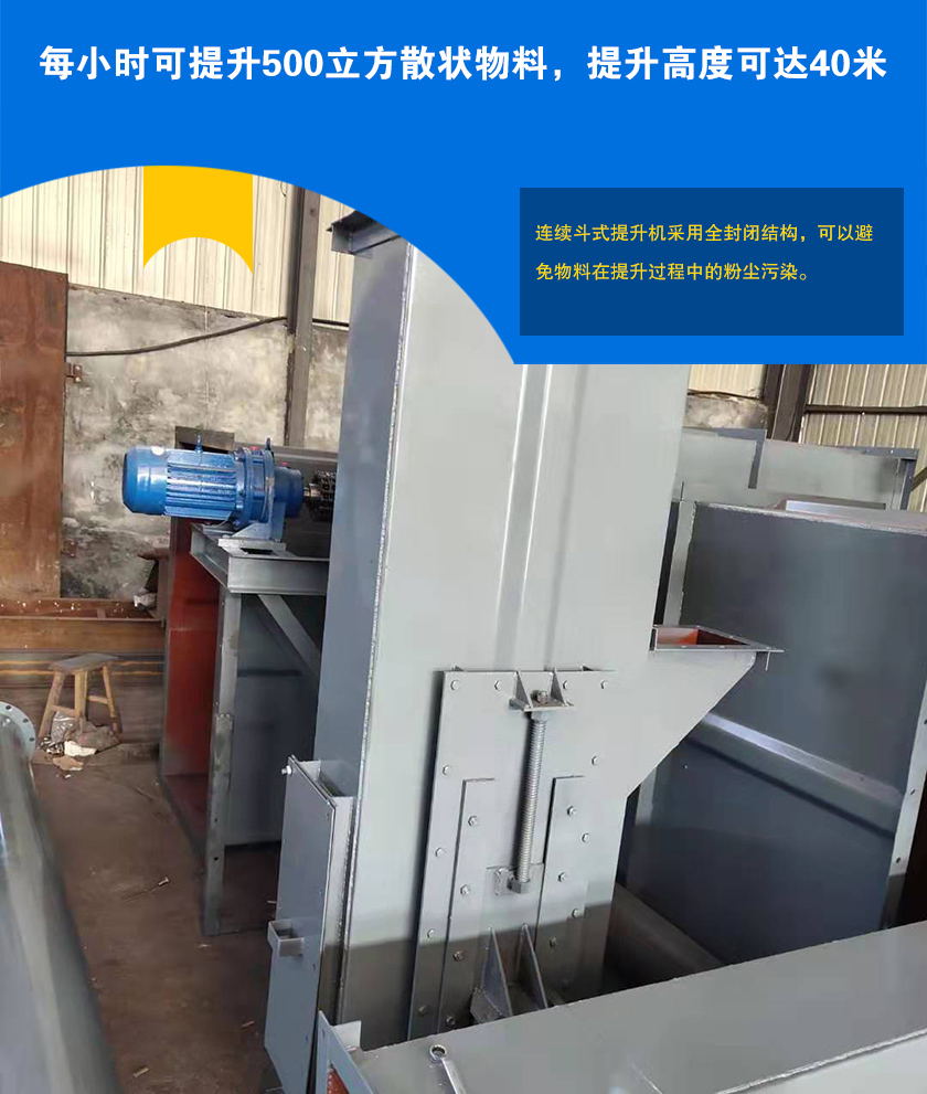 3、連續斗式提升機采用全封閉結構,可以避免物料在提升過程中的粉塵污染。