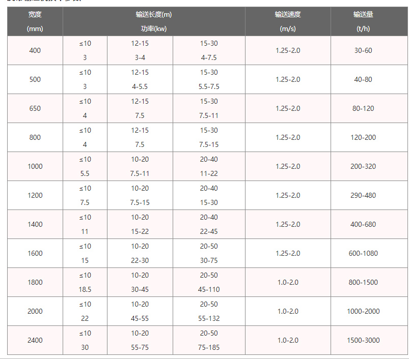 4、根據輸送量的大小采用不同的帶寬,還可在機尾加裝導料槽和擋板以防止物料滑落。