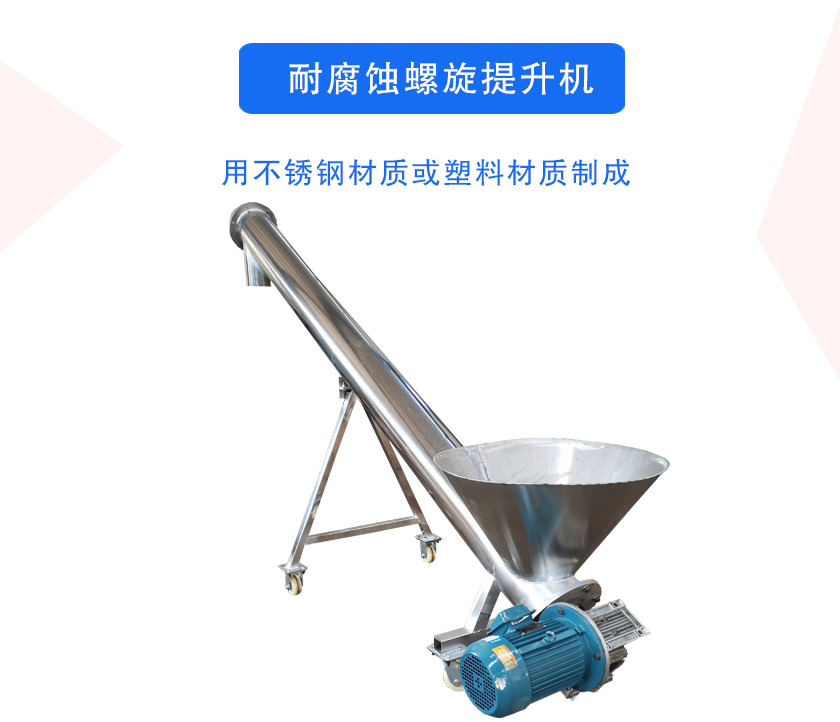 耐腐蝕螺旋提升機(jī)主要用于腐蝕性、溫度高、水分高、易結(jié)塊、粘性大的工作環(huán)境,廣泛應(yīng)用在視頻、醫(yī)藥、建材、化工、電力、冶金、煤炭等行業(yè),可用于料倉(cāng)下輸送物料,或者用于其他出料設(shè)備的出口連接。