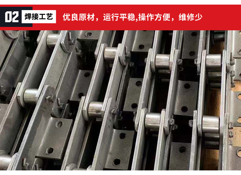 NE斗式提升機中都采用此種型號的鏈條,有NE15-NE800型號,NE15斗式提升機是單鏈,把板鏈用螺栓和料斗直接緊固在一起就行(NE板鏈上有固定的螺絲孔),NE30以上的斗式提升機都是雙鏈條的,安裝時在料斗的兩側平行擺好板鏈鏈條,在斗式提升機料斗的左右兩側分別用螺栓把鏈條和料斗逐個螺緊即可。