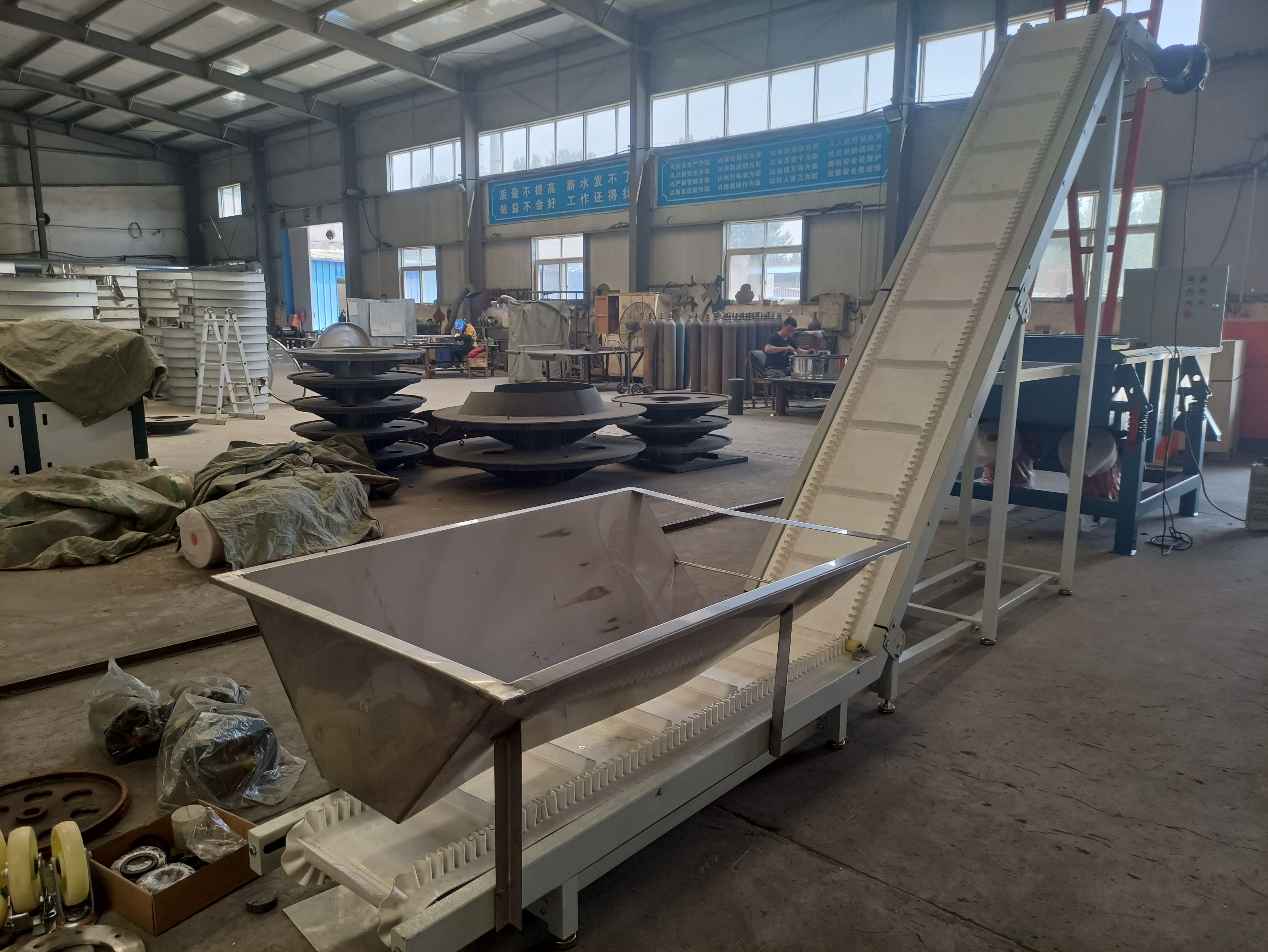 爬坡皮帶輸送機的爬坡角度可以大于30度,垂直輸送甚至可以達到90度,適用于在樓層或高處之間連續輸送貨物。