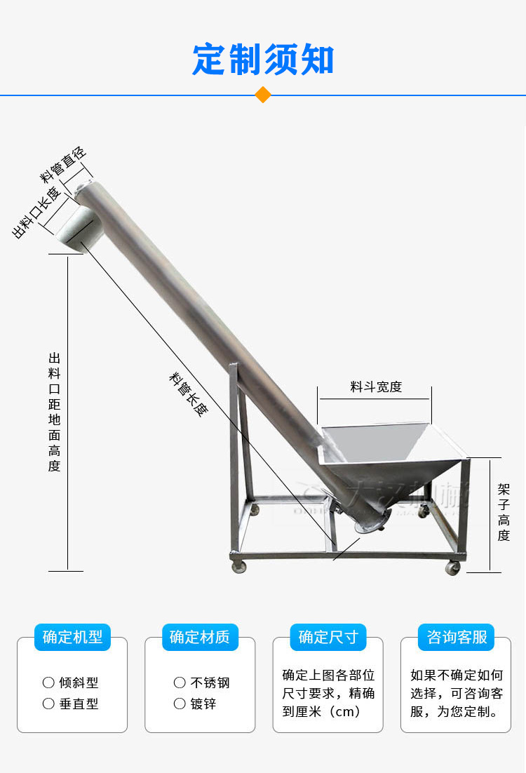 移動螺旋輸送機可根據要求選擇不同的傾角、不同尺寸的進料斗等,實際價格需要結合選擇情況去核算。