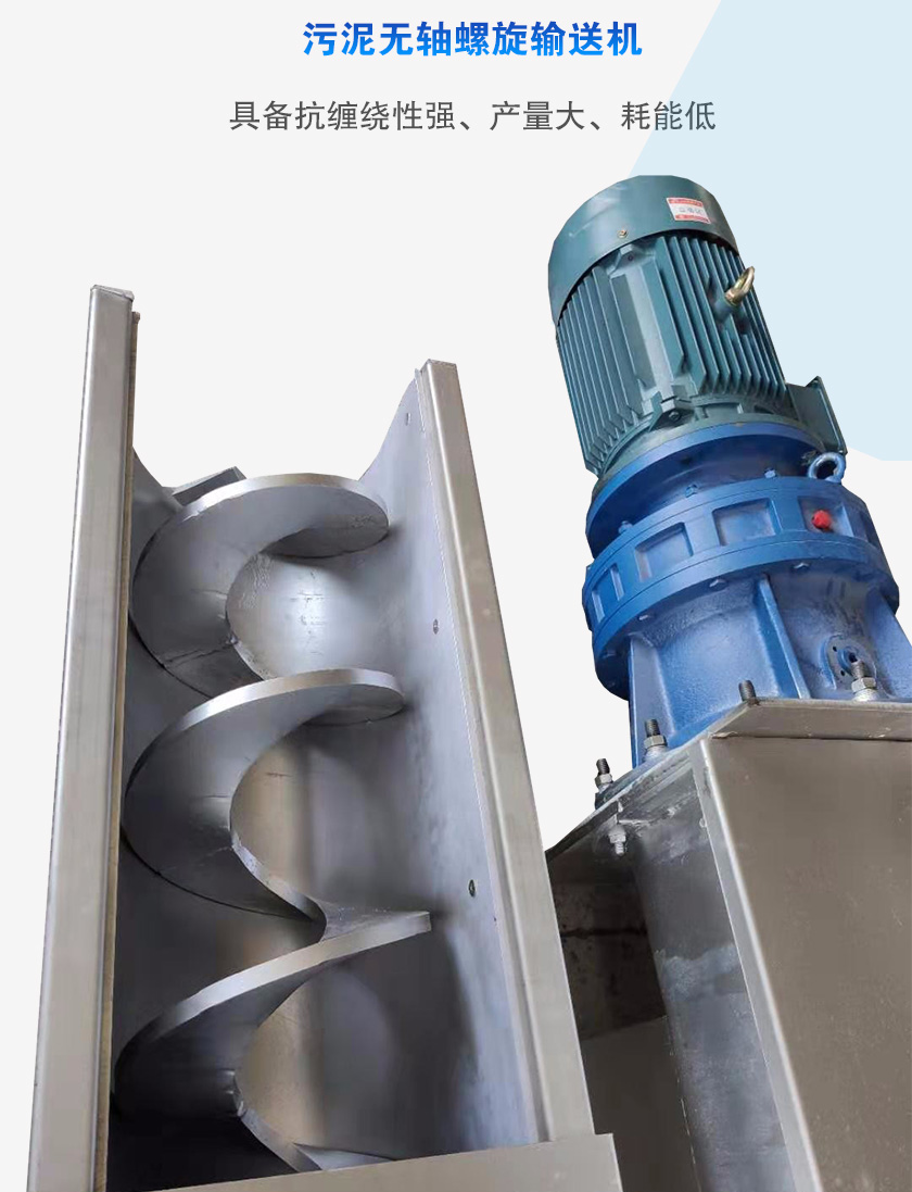 無軸螺旋輸送機是螺旋輸送設備中一種常見的輸送設備,具備抗纏繞性強、產量大、耗能低的特點,所以在輸送污泥這樣的物料時具備很大的優勢,本文將主要圍繞無軸螺旋輸送機在污泥處理中的應用來對其優勢特點進行分析。